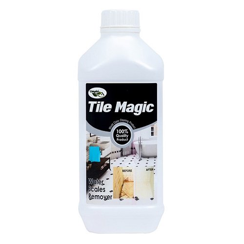 TILE MAGIC is a cleaner for water scaled ceremic tiles. Direct usage with scrub. Leave for 2-3 minutes, all scales will be removed from tiles.